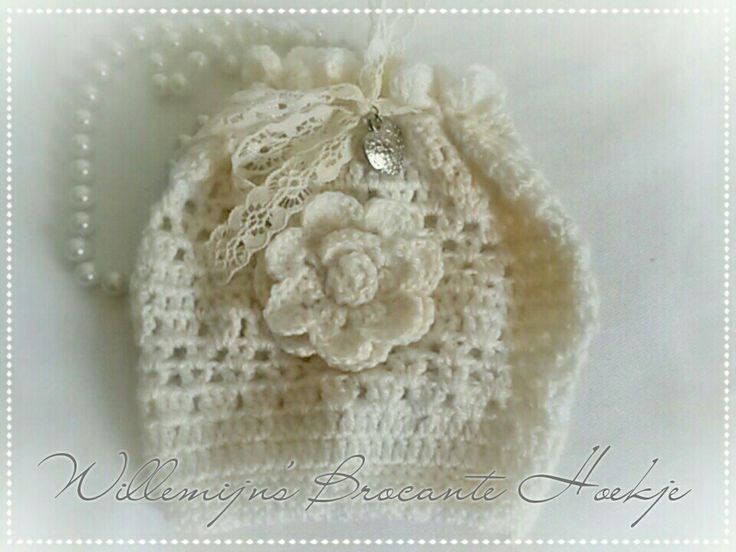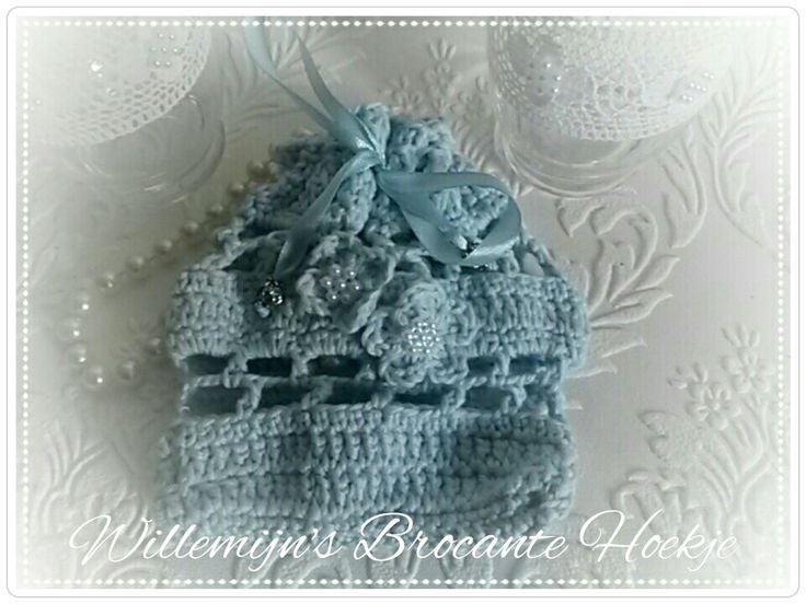 Licht blauw gehaakt zeepzakje of kado zakje € 4.50